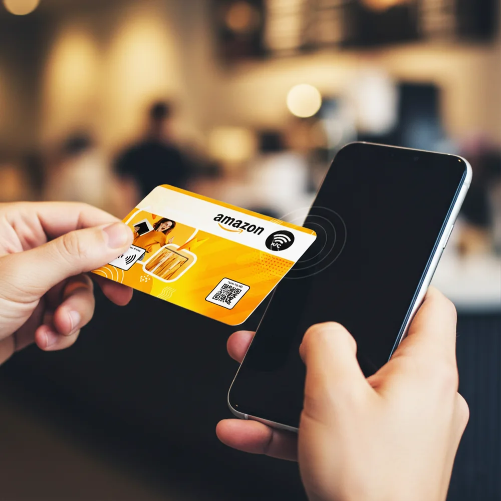 Powered by advanced NFC technology, this card opens your Amazon store automatically on NFC-enabled smartphones — no apps, QR codes or manual searching required.