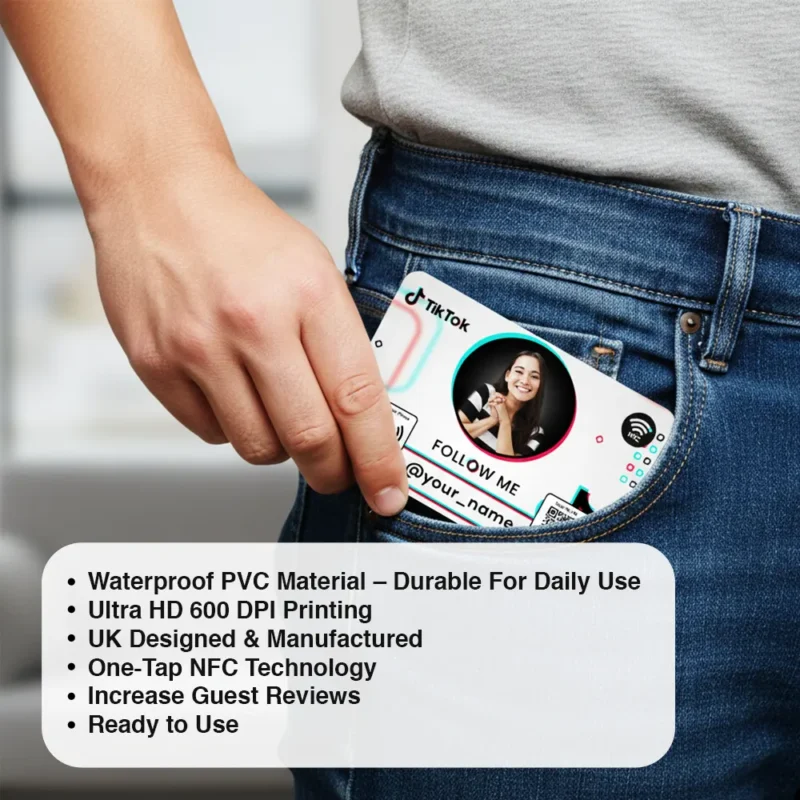 TikTok thrives on instant engagement. By making it effortless for people to access your profile, NFC TikTok cards help increase followers, boost visibility and strengthen your social media presence both online and offline.