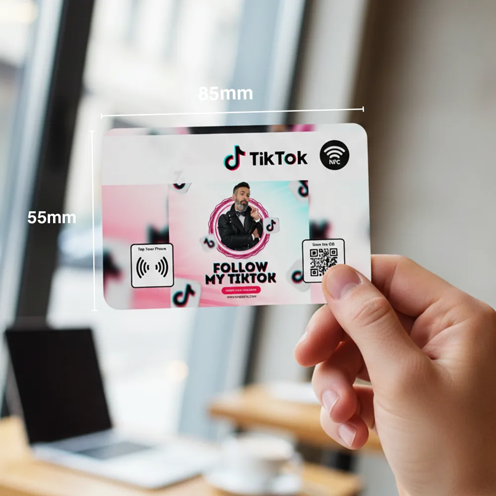 Promote your TikTok profile instantly using the NFC TikTok Card, a smart, contactless solution that lets people open your TikTok profile with a single tap on their smartphone.